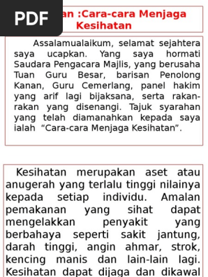 - Merupakan kaedah terbaik untuk mengekalkan kesihatan. Panjang karangan anda hendaklah antara 200 hingga 250 patah perkataan. Dalam meniti arus kemodenan yang berteraskan sains dan teknologi maklumat faktor kesihatan masyarakat pada hari ini berada pada tahap yang membimbangkan pihak.